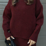 Marie™ forener minimalistisk elegance i strik med praktikken af et alsidigt sæt: blød langærmet bluse og matchende nederdel. Det perfekte valg for dig, der ønsker sofistikation, hygge og et raffineret look til enhver anledning.